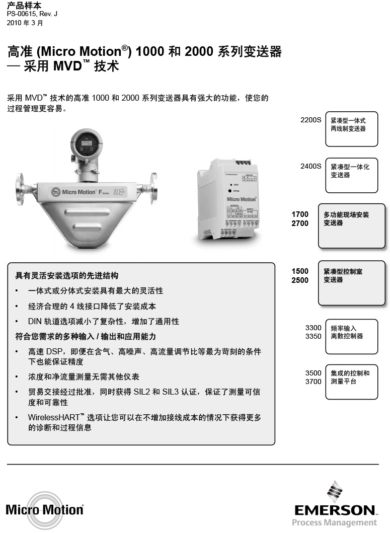 名稱:高準(zhǔn) (Micro Motion®) 1000 和 2000 系列變送器