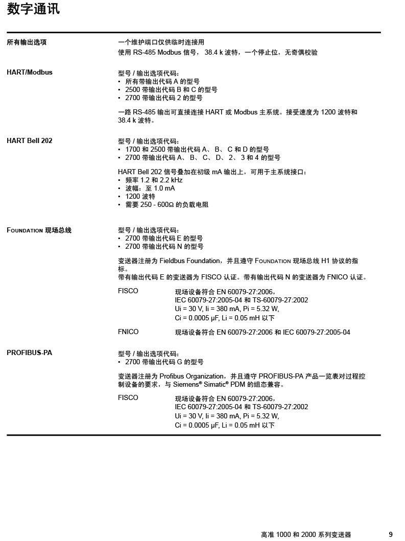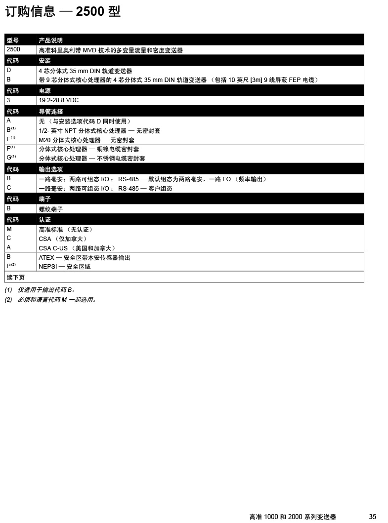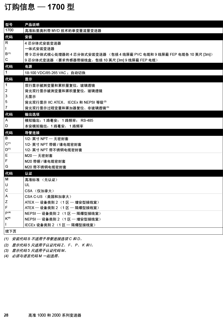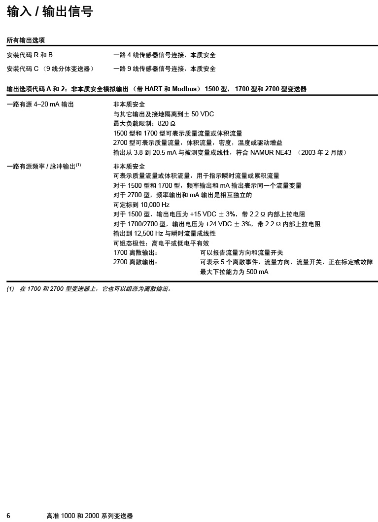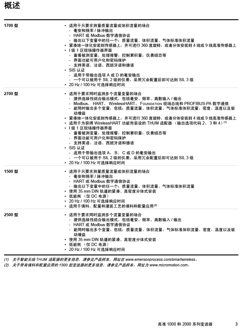 型號:高準(zhǔn) (Micro Motion®) 1000 和 2000 系列
