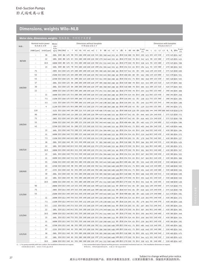 名稱:威樂臥式端吸泵NLB系列