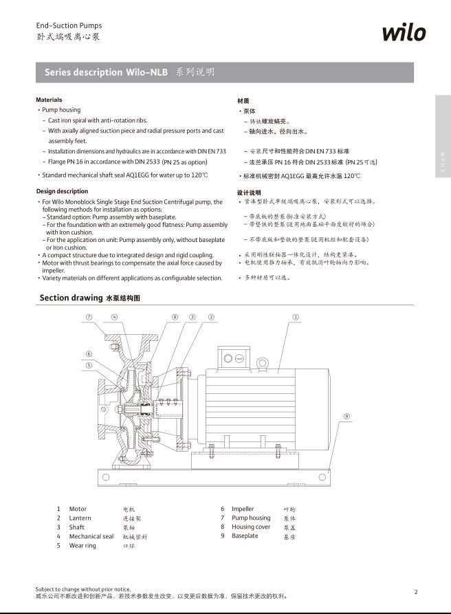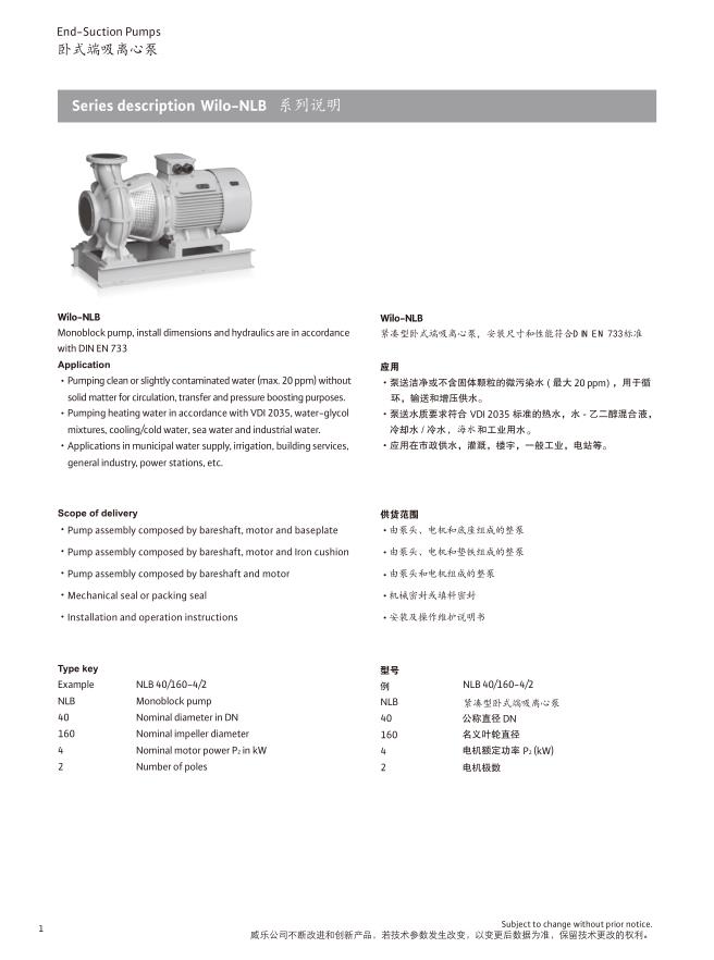 名稱:威樂臥式端吸泵NLB系列