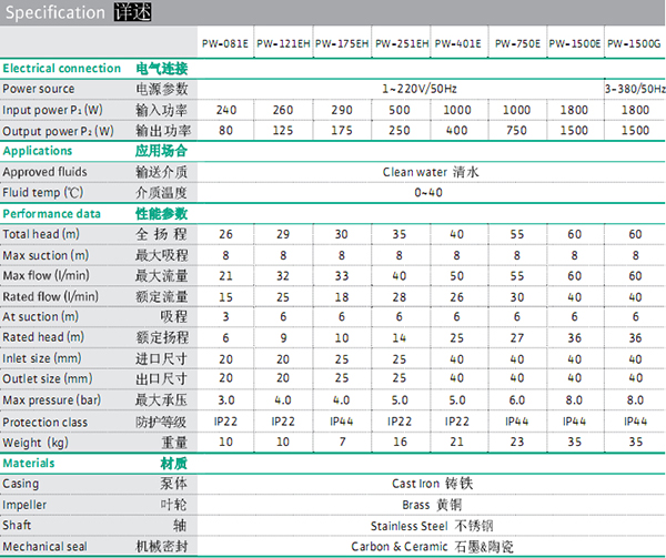 型號:PW-1500E(220V) PW-1500G(380V)